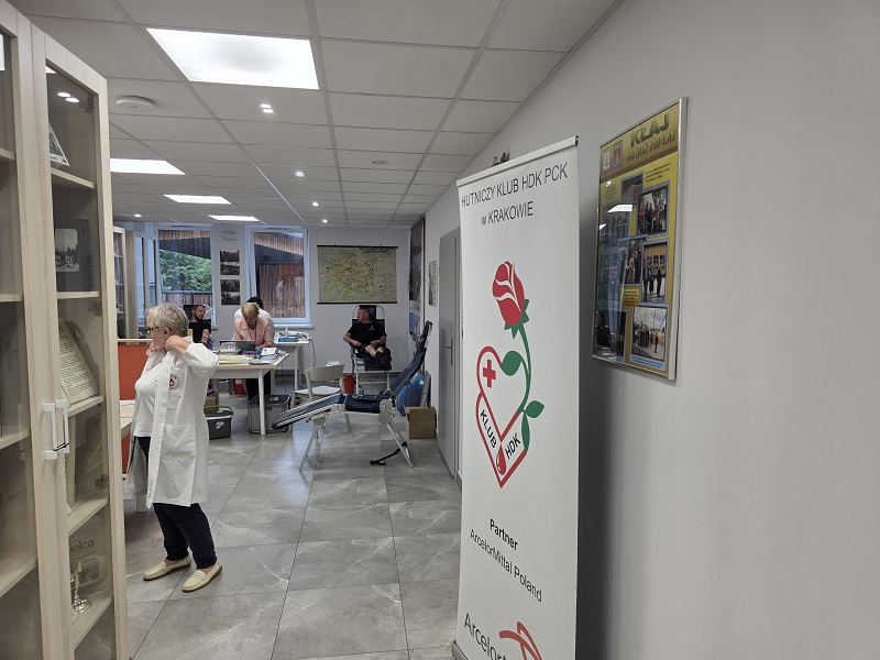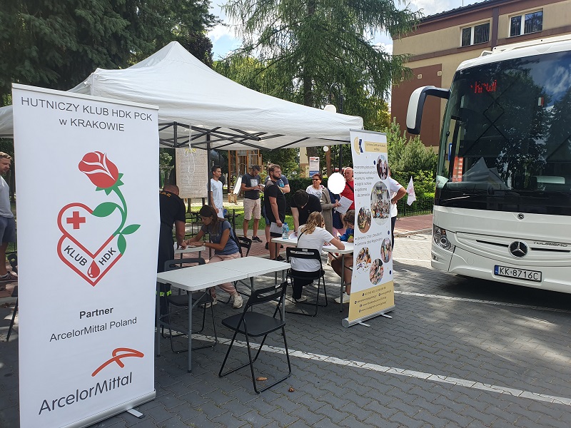 Hutniczy Klub Honorowych Dawców Krwi PCK również chciał zaakcentować jak ważne jest zdrowie, organizując akcję krwiodawstwa przed budynkiem dyrekcyjnym krakowskiego Oddziału ArcelorMittal Poland.